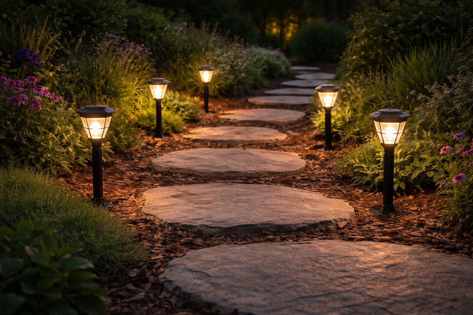 Turn a Dark Garden Path Into a Glowing Walkway With Solar Lights Stepping stone paths are beautiful during the day, but they can disappear once